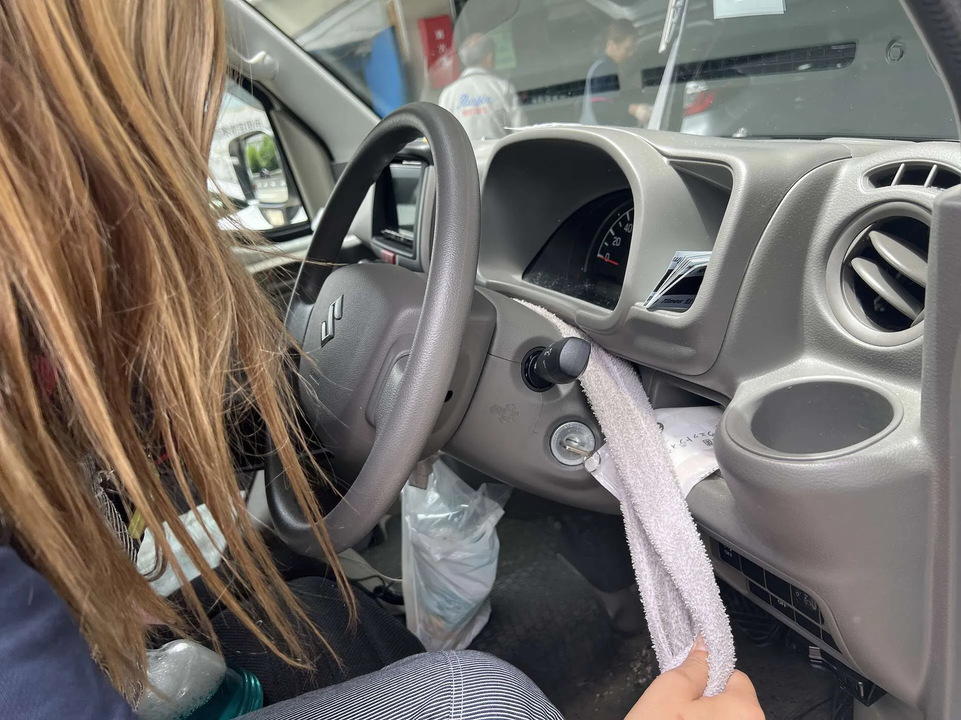今回はエアコン吹き出し口やメーターフード、シフト周辺まで丁寧に拭き上げました。