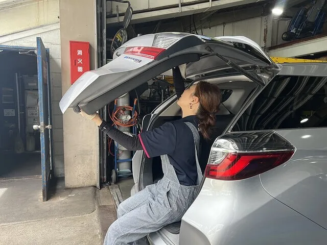 当店では、車検や法定点検の際に「安全面の確認」や「消耗品交換」だけでなく、車内外の清掃・仕上げ作業も実施。