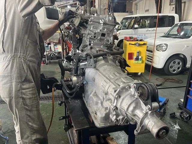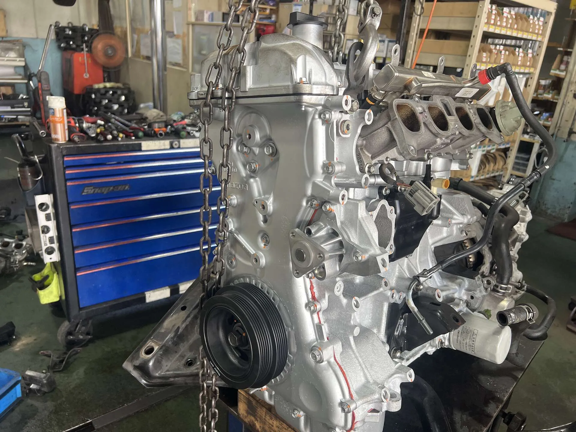 エンジン異音修理にあたって、リビルトエンジン載せ替え(エンジン交換)を行いました。